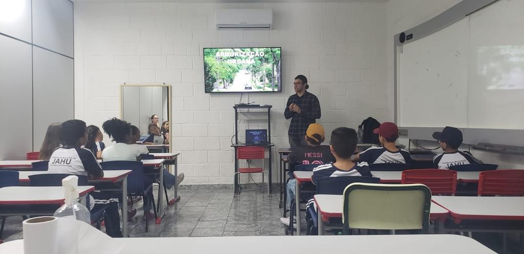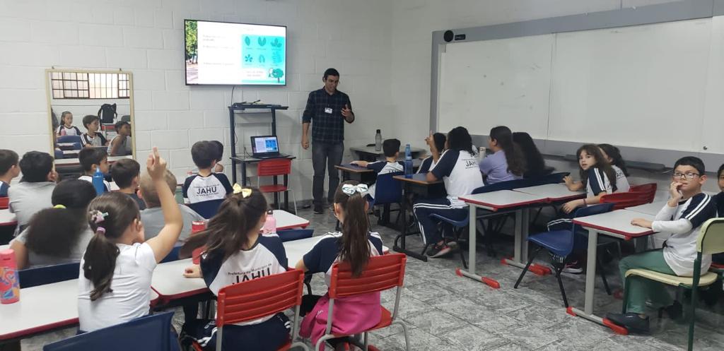 Estudantes da Escola Municipal de Ensino Fundamental - EMEF Caetano Perlatti participaram de palestra sobre arborização urbana, na manhã de sexta-feira (15).