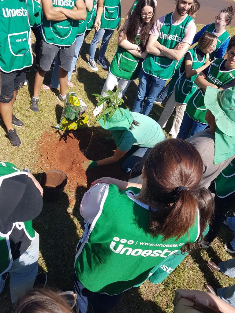 Em parceria com a Unoeste - Campus Jaú, 40 mudas de árvores foram plantadas na avenida Dr. Luciano Pacheco de Almeida Prado, no Jardim Nova Jaú, sexta-feira (15). Estudantes calouros do curso de medicina, que participam do trote sustentável, também se envolveram no plantio.